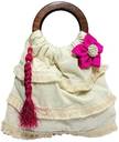 Vinod Handicrafts Women Handbags handcarfted Wooden handle tassel hanging Flower Embellishment Wristlet