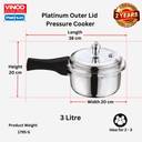VINOD Platinum Triply Stainless Steel Outer Lid Pressure Cooker 3 L Outer Lid Induction Bottom Pressure Cooker (Stainless Steel)