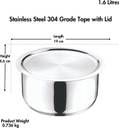 VINOD Stainless Steel 304 Grade Tope/ Patila/Topiya with Lid Tope with Lid 1.6 L capacity 16 cm diameter (Stainless Steel, Induction Bottom)