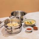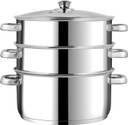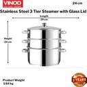 VINOD Vinod Stainless Steel Steamer 3 Tier with Glass Lid 24 cm,Momos, Modak Maker Stainless Steel Steamer (3 L)