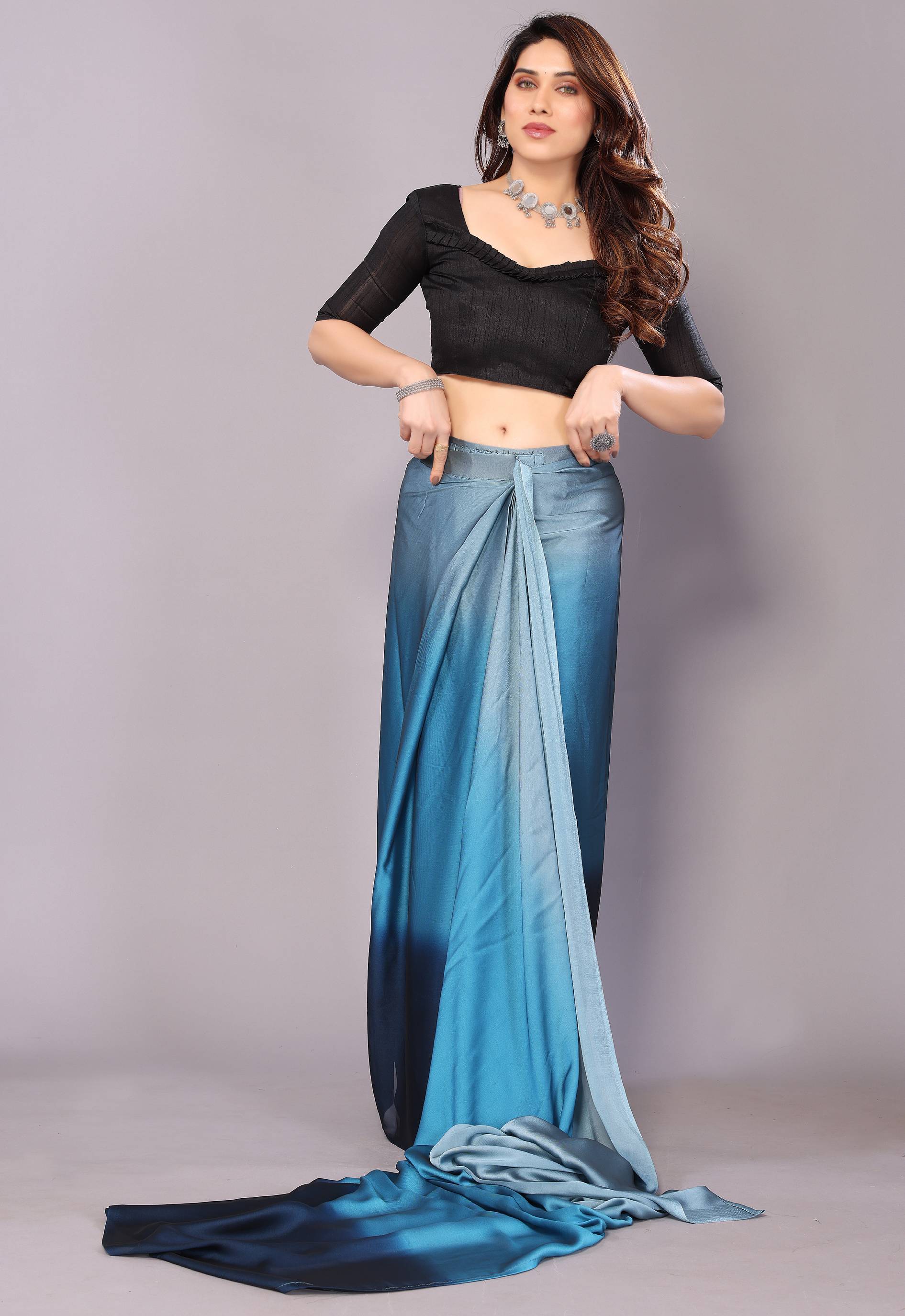 VioProm Printed Bollywood Georgette Saree (Purple)