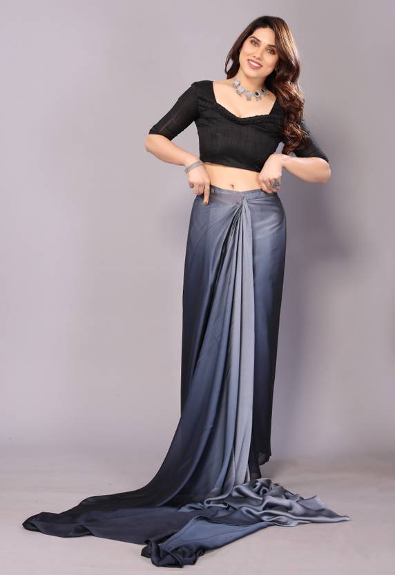 VioProm Printed Bollywood Georgette Saree (Grey)