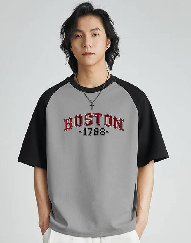 Men Printed Round Neck Cotton Blend Grey T-Shirt