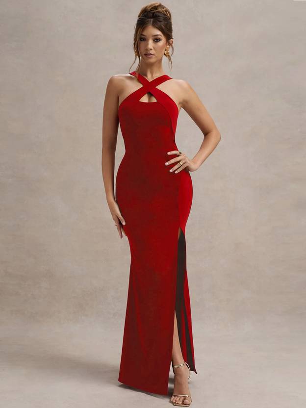 VIOUR Women Bodycon Red Maxi/Full Length Dress