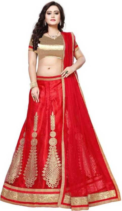 Floral Print Semi Stitched Lehenga Choli (Red)