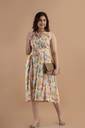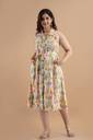 "Elevate your style with this elegant white one-piece dress, crafted from soft and breathable rayon fabric. The dress features a beautiful leaf print that adds a touch of nature-inspired charm. Designed sleeveless for a sleek, modern look, it also comes with optional extra sleeves for versatile styling. Perfect for both casual outings and special occasions, this dress offers comfort without compromising on style."