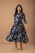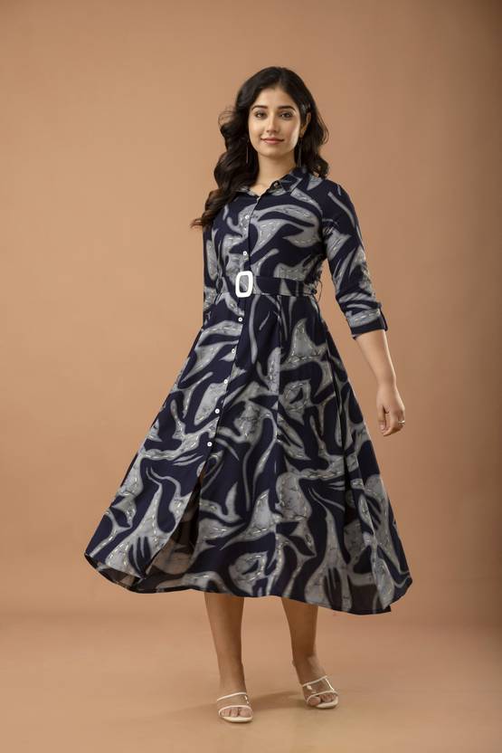 VIPY HANGER Women Printed Flared Kurta (Dark Blue)