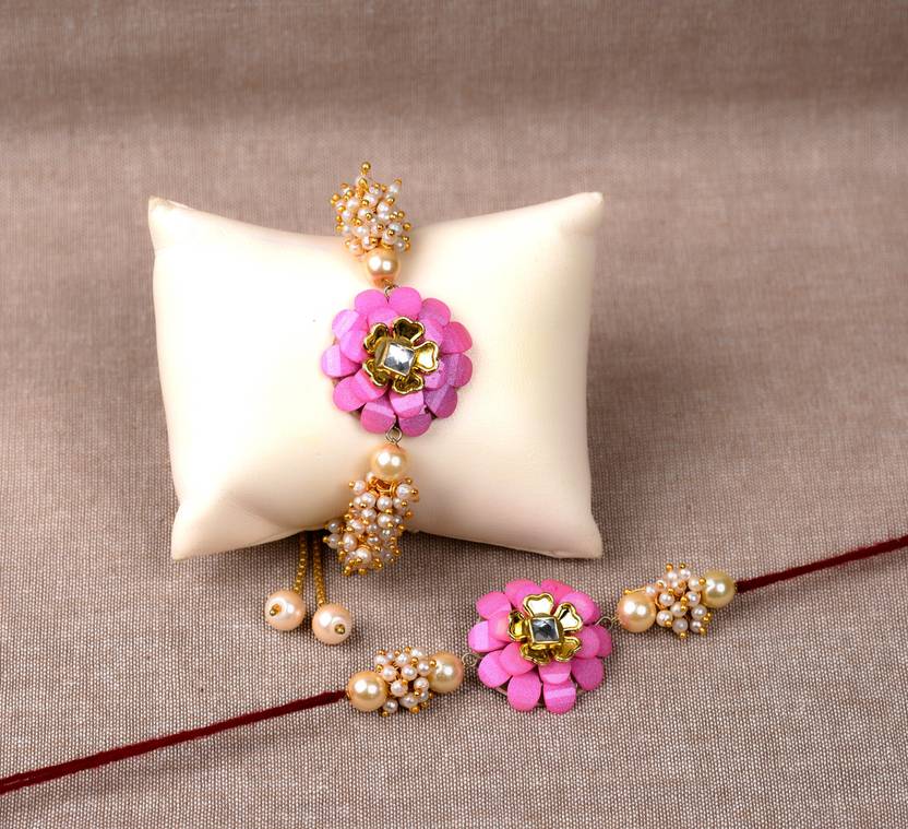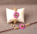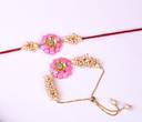 Designer Rakhi-2021 Gold Finish, Kundan, Pearl Rakhi, Lumba Set (1 Male Rakhi, 1 Female Rakhi)
