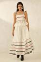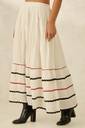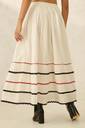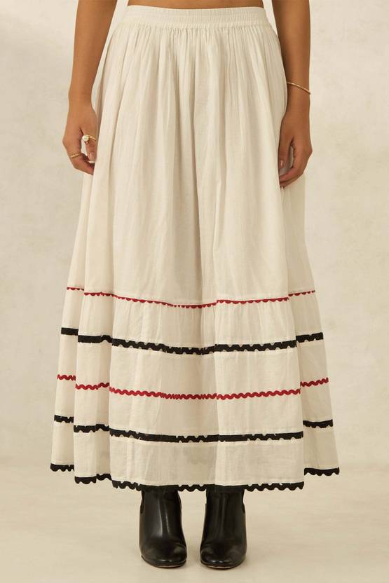 White Lace Detail Flared Maxi Skirt – A flared maxi skirt for women featuring lace details, gathered waist, and straight hem. Made from sustainable cotton — perfect for brunch, vacations, and daywear.