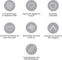 • GenNext Protection: 2X (Inner & outer) HeiQ Viroblock treated antiviral antibacterial layer with meltblown filter in middle for high efficiency filtration, • Innovative ‘Crossed soft elastic head loops’ for painless long hour use, no more painful ears, • Reusable & washable, • Ultra-soft 100% cotton knit inner layer with antiviral, anti-bacterial & hypo allergenic coating for premium comfort & protection, • Unique ‘Air Bubble design’ for low heat buildup, improved filtration & breathability, • Premium comfort & snug fit via ergonomic design with ‘nosepin’, • Hypo allergenic skin friendly finishing