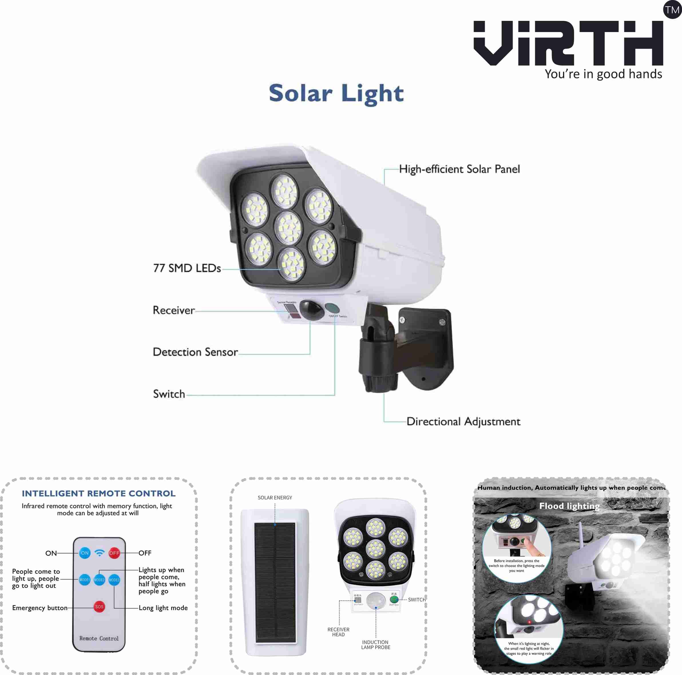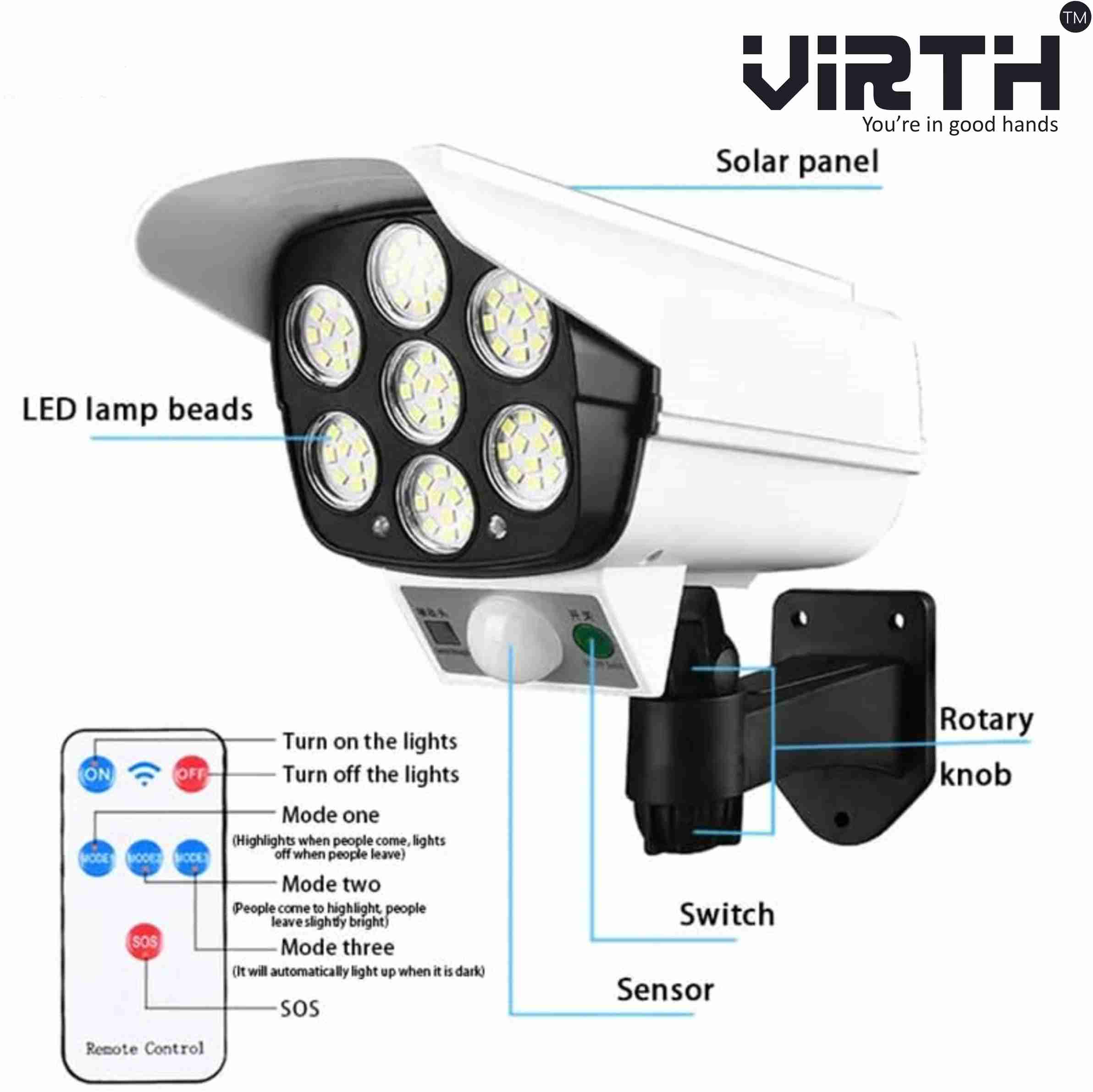 Outdoor Motion Sensor Solar Lights Dummy Security Camera LED Solar Light Solar Light Set (Wall Mounted Pack of 1)