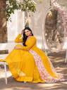 Solid Georgette Stitched Anarkali Gown (Yellow)