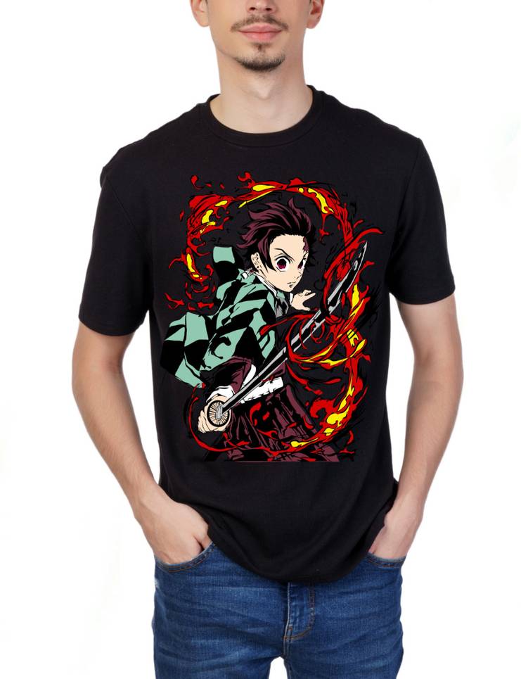 Men Printed Round Neck Organic Cotton Black T-Shirt