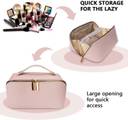 Virtuous Large-Capacity Side Zipper Waterproof PU Leather Cosmetic Bag Travel Toiletry Kit (Pink)