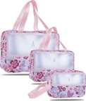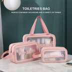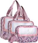 Virtuous Multipurpose Clear washbag 3 Pouch, Clear Pouch for Makeup and wash Bag (Pink)