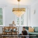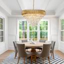 The Modern Luxury Crystal Pendant Light Chandelier is a stunning lighting fixture designed to add elegance and sophistication to any space. With a sleek round design and a diameter of 600mm, this chandelier is ideal for illuminating living rooms, dining tables, or restaurant settings with style and grace. Crafted with high-quality materials, this chandelier features a luxurious gold finish that adds a touch of glamour to any room. The flush mount design ensures a seamless integration with the ceiling, providing a clean and polished look. The centerpiece of this chandelier is its exquisite crystal pendant lights, which radiate brilliance and sparkle when illuminated. The crystals are meticulously arranged to catch and reflect light, creating a dazzling display that enhances the ambiance of the room. Whether installed in a modern or traditional setting, this pendant light chandelier effortlessly elevates the décor with its refined aesthetics and timeless appeal. It provides ample illumination for various activities while serving as a striking focal point in the room. Perfect for residential or commercial use, this fixture combines functionality with opulence, making it a versatile choice for enhancing the atmosphere of living rooms, dining areas, or upscale restaurants. Overall, the Modern Luxury Crystal Pendant Light Chandelier offers a perfect blend of style, sophistication, and functionality, making it an exquisite addition to any interior space seeking to make a statement of luxury and refinement.