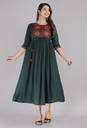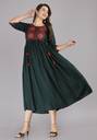 VISAOM Women Printed Cotton Rayon Flared Kurta (Dark Green)