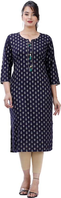VISHAKHA STYLE Women Printed Straight Kurta (Dark Blue)