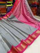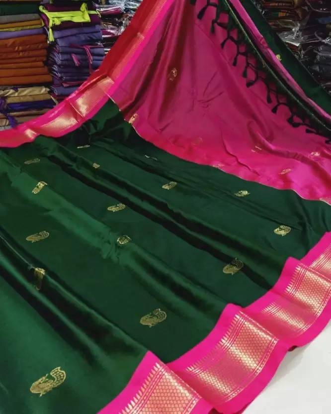 Vishal Creations Woven Banarasi Silk Blend Saree (Dark Green, Pink)