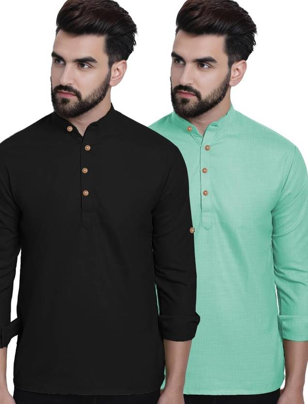 Pack of 2 Men Solid Pure Cotton Straight Kurta (Beige)