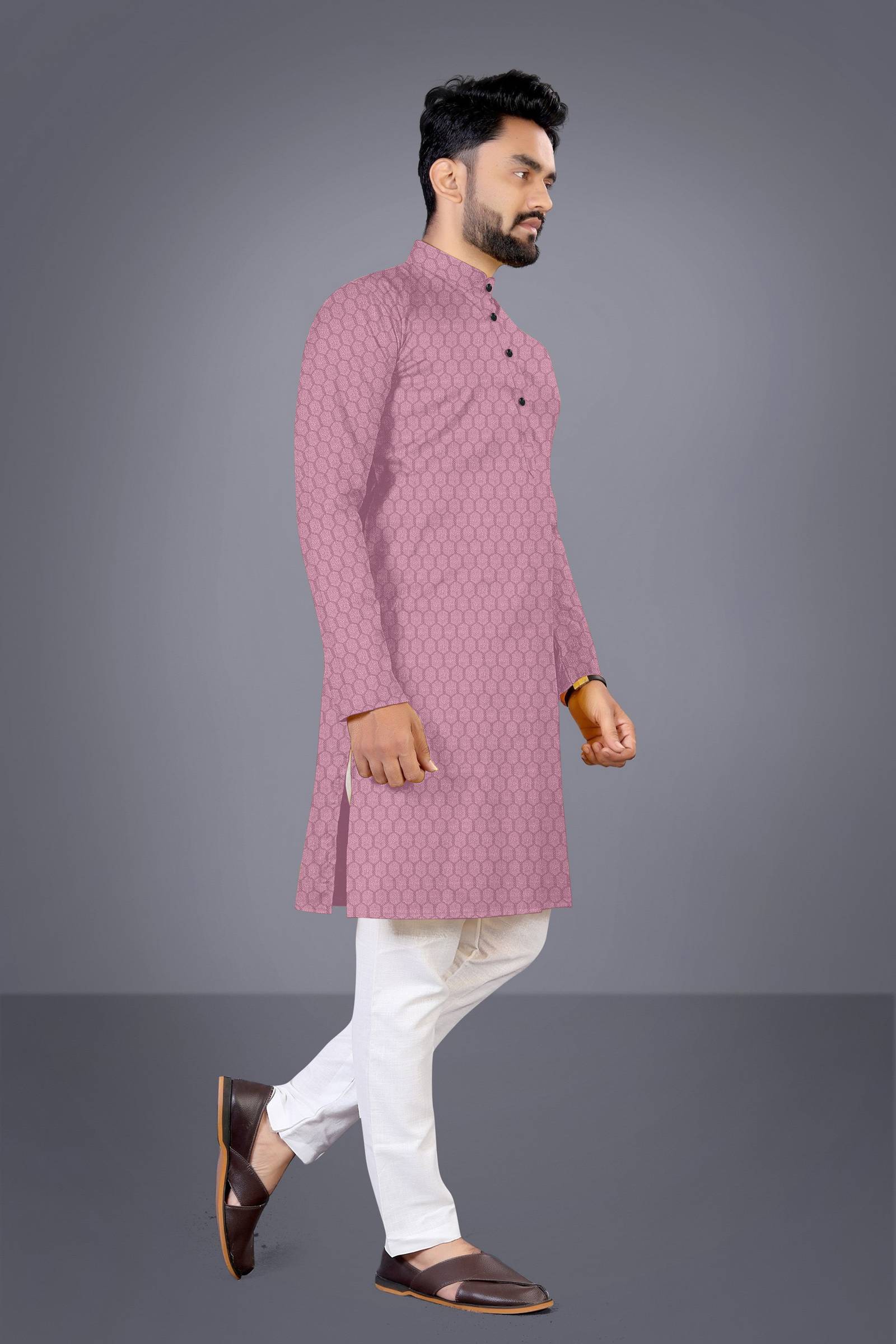The dress features intricate detailing with fine stitching, enhancing its durability and aesthetic appeal. The tailored fit complements all body types, providing a flattering silhouette that enhances your natural charm. The mandarin collar and button-down front add a touch of classic ethnic style, while the side slits offer ease of movement and comfort. Whether you're attending a wedding, a religious ceremony, or a family celebration, this versatile ethnic dress ensures you look your best. Pair it with traditional footwear for an authentic look or modern accessories for a contemporary twist. Elevate your wardrobe with this stylish and versatile ethnic dress, a perfect blend of tradition and trend.