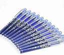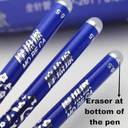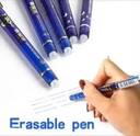 bout this item Fine Tip for Precision Writing – The pen features a fine-point tip that ensures crisp, clean lines, ideal for note-taking, journaling, and professional writing. Smooth Flowing Blue Gel Ink – Offers consistent, skip-free ink flow for a comfortable and effortless writing experience. Built-in Eraser for Quick Corrections – Easily erase mistakes with the integrated eraser, leaving no smudges or damage to the paper. Thermo-Sensitive Erasable Ink – Innovative gel ink disappears with friction, allowing for repeated writing and editing without any mess. Perfect for School, Office & Everyday Use – Designed to meet the needs of students, professionals, and anyone who values neat, flexible, and mistake-free writing.