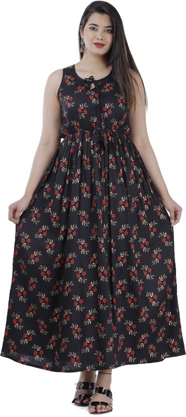 VISHNURAJ Women Gathered Black Maxi/Full Length Dress