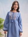 Vishudh Women Indigo & Blue Short Tiered Dress With Round Neck With Three Quarter Sleeve