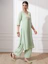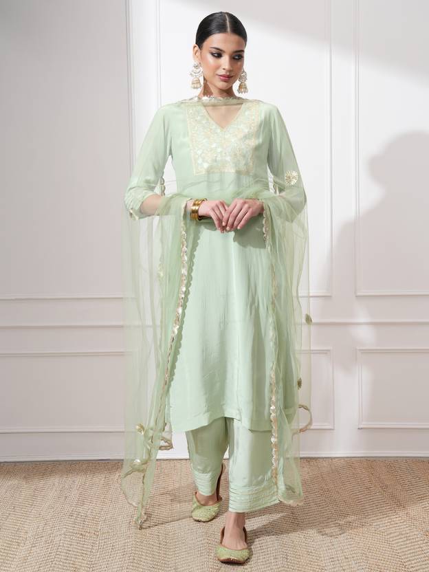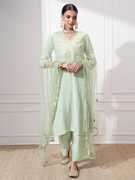 Vishudh Women Green Embroidered Straight Kurta With Regular Pants And Dupatta