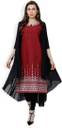 Vishudh Women Printed Cotton Blend A-line Kurta  (Red, Black)