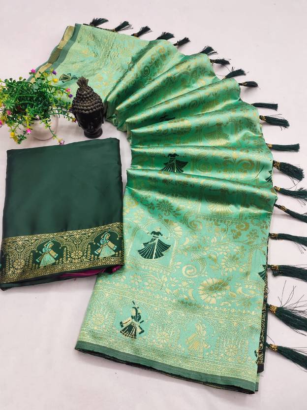 VISHVAMBHARI ENTERPRISE Woven Banarasi Jacquard Saree (Light Green)