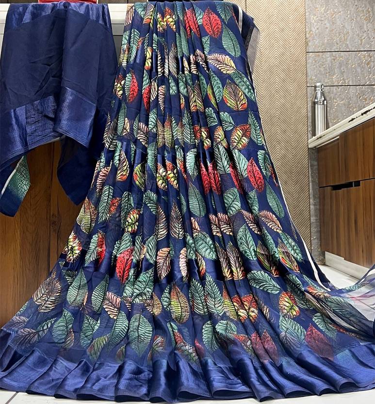 Printed Designer Georgette Sattin patta Saree With attached running blouse