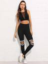 SSK COLLECTION They will compliment your legs and match all of your outfits. Perfect ankle length pants; highlighting for long legs. Pull-on leggings; no zipper fly or button closure; very convenient and comfortable. Mesh Knee Cut Ripped yoga ; gym and active sports fitness Leggings tights for Women .A black track pants. This is the fashion trend for the modern women. It is highly elastic material that gives you a slim body hugging fit.You can wear it on every occasions be it you Gym Classes or yoga Classes or evening casual walk.Tags ripped leggings criss cross legging Gym Leggings yoga leggings black lower joggers.