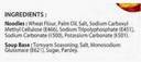 • Noodle Wheat Flour, Palm Oil, Salt, Permitted Food Conditioner (E466, E451, E500, E501), Added Nutrient (E341).
