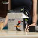 Spills Happen. Whether you're battling a coffee catastrophe or facing a toilet paper dilemma, remember: Vital Inhouse is your trusty sidekick in the war against spills. Embrace the mess, because with Vital Inhouse, cleanup is just a napkin away! The pack of 2 is a perfect addition to your home. Our boxes are compact with 2 openings. You can either open the box the way you would usually or you can tear along the perforations if you wish to make a Tissue paper Napkin stand out of the box. Each box contains 110 pcs of 1 ply tissue paper napkins (10% more than what you've been buying).