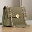 Sporting a chain strap with an ergonomic padded shoulder rest, this bag provides comfortable carrying throughout the day. The magnetic closure ensures seamless security, keeping belongings safe while allowing for quick access. Boasting multiple compartments and up to two pockets, this bag offers ample space for essentials like wallets, phones, and cosmetics. The up to 10 L capacity accommodates everyday items without compromising on style.