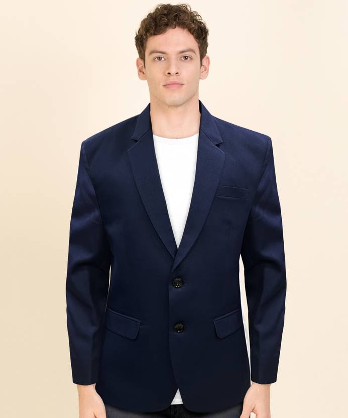 viun Men Solid Single Breasted Casual Blazer (Dark Blue)