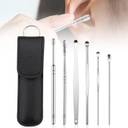 Black 6 Pcs Ear Wax Cleaner-Resuable Ear Cleaner Tool Set with Leather Pouch