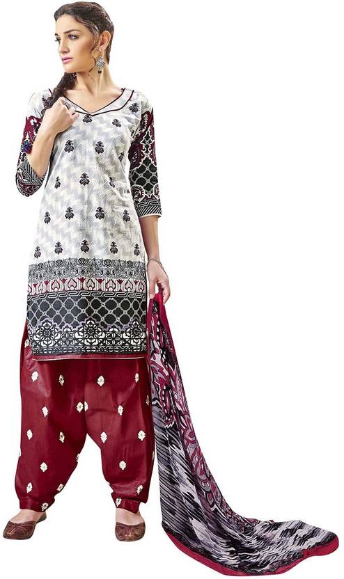 Top Color:-Grey, Bottom Color:-Maroon, Dupatta Color:-Grey & Off white, Top Fabric:-Cotton, Bottom Fabric:-Cotton, Dupatta Fabric:-Najneen, Top Size:-2 Mtr, Bottom Size:-2.25 Mtr, Dupatta Size:-2.25 Mtr