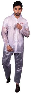 This is a transparent set of rainwear that is exclusively designed for men. This raincoat comprises a full sleeve jacket and pants. It also has a hood to protect the head from the rain. This men’s raincoat is made of PVC plastic and has a zipper attached to prevent the rain from seeping in. The fabric used in this full raincoat provides full comfort and helps your skin breathe through it. The transparent look adds to the style of the user and enhances his appearance. The size for this raincoat for men is XXL. Do not use iron on this rainwear.