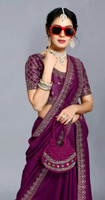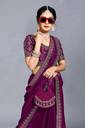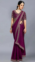 Here is a saree with distinctive stitching that screams elegance. The saree has a sleek, timeless appearance thanks to its beautiful embroidery. It features simple designs that showcase excellent craftsmanship. The saree's authenticity and charm are attested to by its fine intricacies. All lovers of sarees will appreciate the exquisitely made designs of this lovely embroidery.