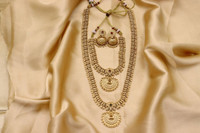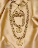 Courtesy of its practical closure system, the necklaces of this set feature an easy-to-use drawstring fastening that allows for effortless adjustment to suit different preferences. This design makes it simple to achieve the right fit without difficulty. Furthermore, the Jhumki earrings are designed with secure closures, ensuring they remain firmly in place during wear while still being easy to fasten or remove. Both pieces focus on combining comfort with reliability, offering confidence while wearing them for extended hours.