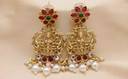 There is an array of pearls added in the frame of the jewellery both in the necklace and the earrings. The lovely pearls are added to the bottom of the jewellery as a single row of elegance. This is what gives a distinct touch to the jewellery and a bold appeal. Moreover, there is a peacock framework provided in the base of the jewellery for exciting wear for all. The addition of pearls adds to the visual appeal of the jewellery and makes it even more beautiful.