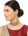 This is a jewellery set made in an enchanting pattern for women and girls. With the alluring finish added to its design, the jewellery makes adorning wear for all. The set comprises a pair of earrings and a necklace all made in a matching theme. With the added gemstones in a matte touch, the jewellery represents class and an ethnic touch like none other.