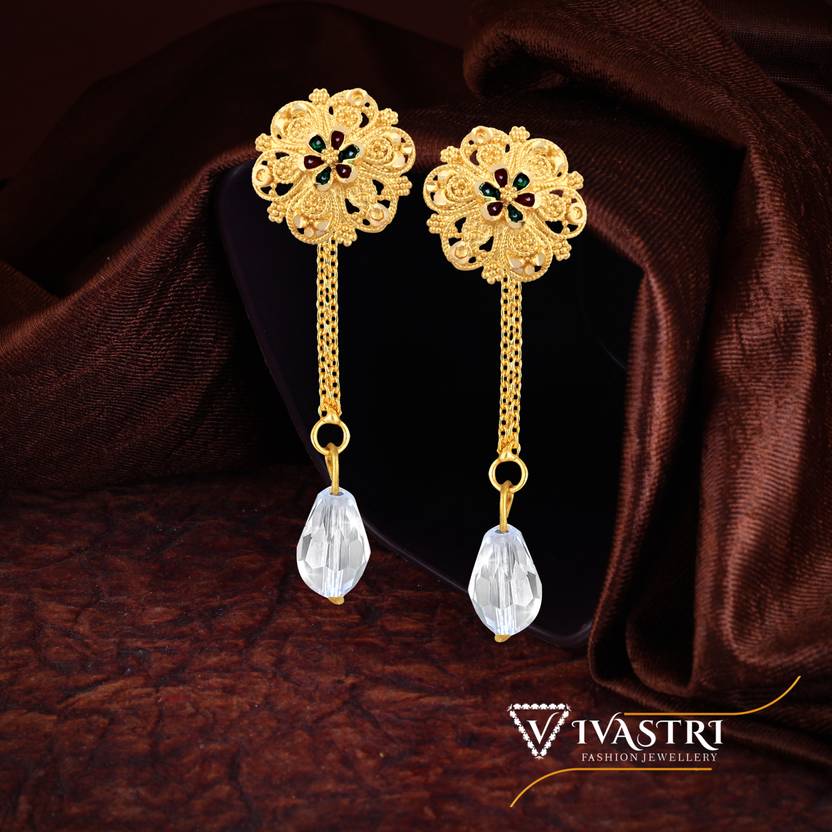 Base Metal: Brass and Alloy Plating: Gold Plated Sizing: Non-Adjustable. Stone Type: Cubic Zirconia /No Stone Type:Stud Earring drop Earrings. Net Quantity (N): 2 Earrings 1 Gram Gold Plated 1 Stud Earring & 1 drop Earring . Jumbo Earring, Earrrings, jhumki Earring, Fashion Earring, Stud, Smartdrop Earring, Hoop Earring, Jhumka, Jhumkhas, jhumki Earring, Gold Plated Earring, Fancy Earring, Stylish Earring, Flower Earing, Jhumka, VIVA earring, VIvastri earring,Sui-Dhaga Earrings . Note:1) Every Female is incomplete without Earrings an earring is a piece of jewellery attached to the ear via a piercing in the earlobe or another external part of the ear. Earrings have Daily been an inseparable part of every culture on the Earth. Earrings will add a swanky twist to your jewellery collection.This earrings are the perfect For Diwali, New Year, Valentine's day, Party Wear or any other Occassion. Country of Origin: India
