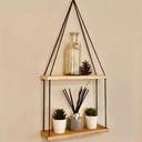 VIVEKA Macrame Wall Decor and Hanging Wooden 2 Tier (50 cm X 30 cm, Black)