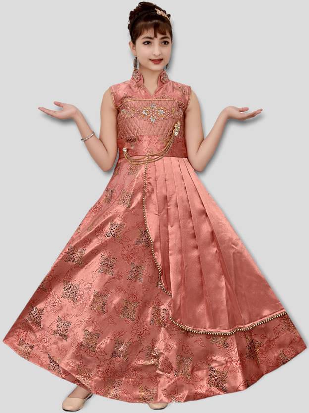 VIVEKGAMENTS Girls Maxi/Full Length Festive/Wedding Dress (Pink, Sleeveless)