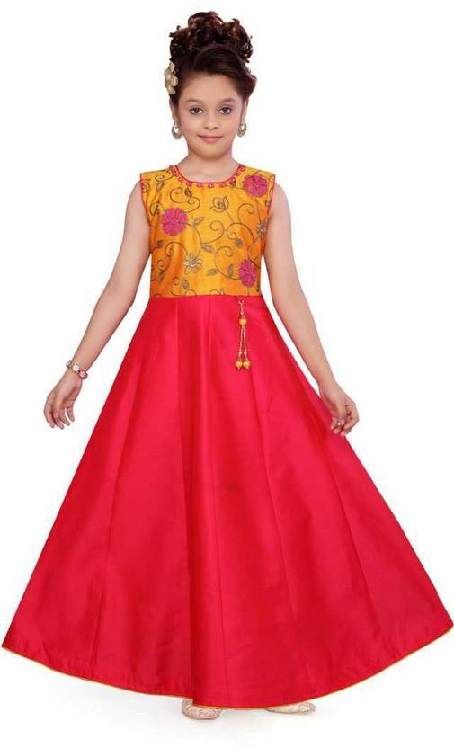 VIVEKGARMENT Girls Maxi/Full Length Party Dress (Red, Sleeveless)
