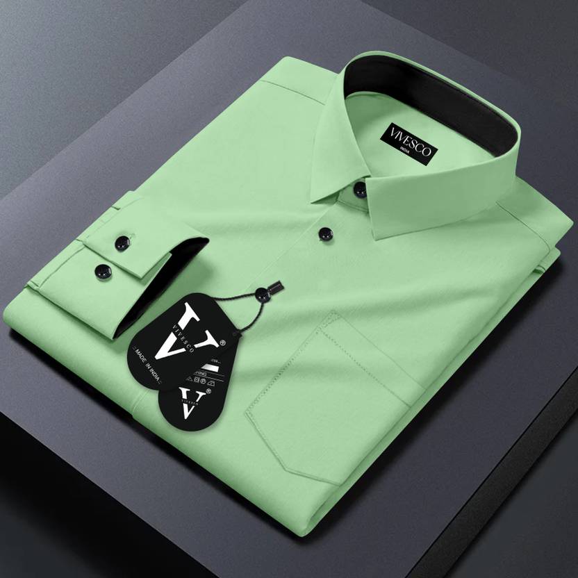 VIVESCO Men Solid Casual Green Shirt