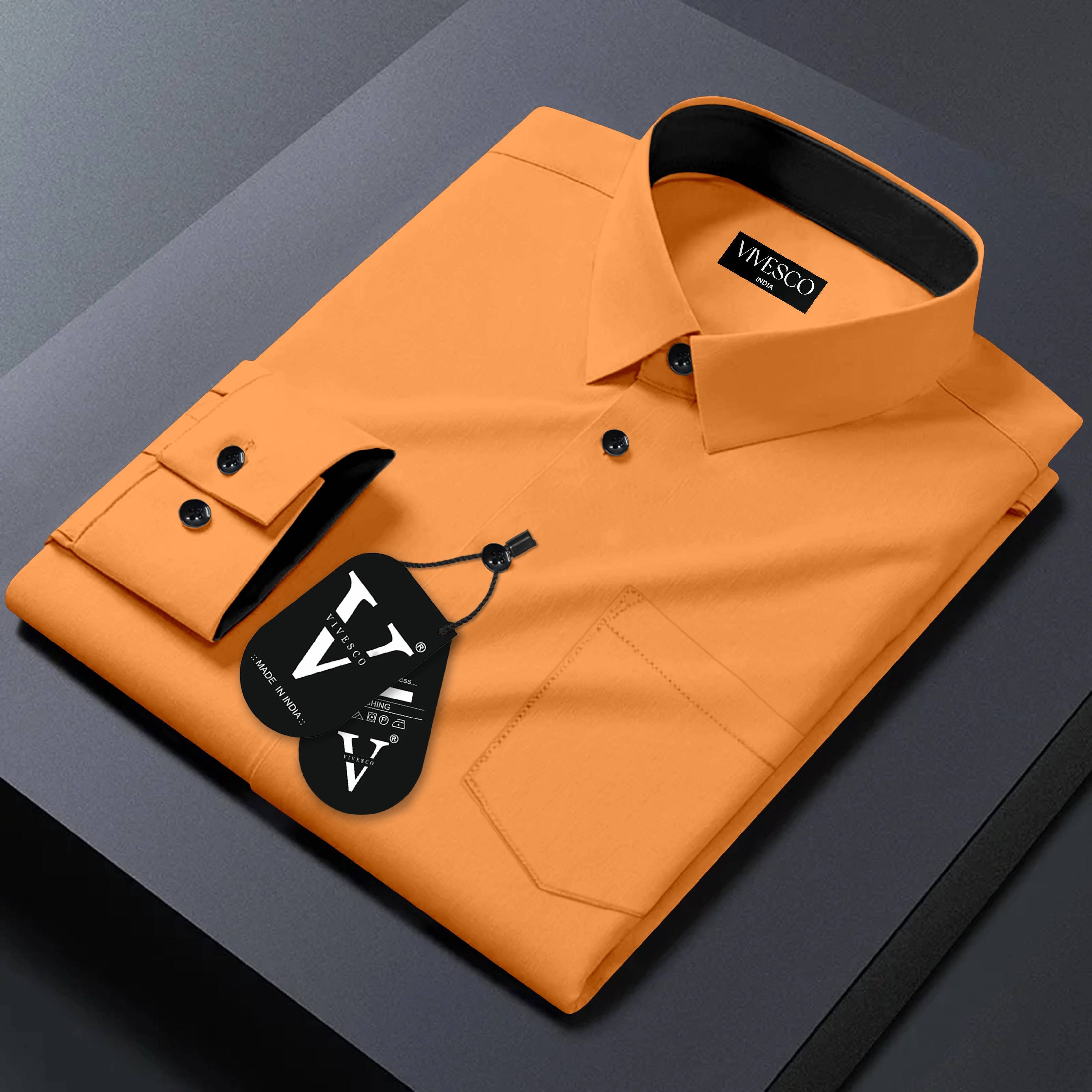 VIVESCO Men Solid Casual Orange Shirt